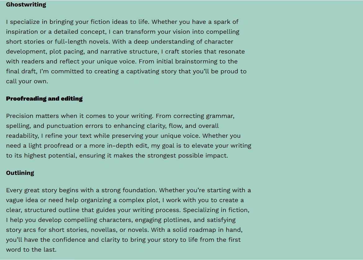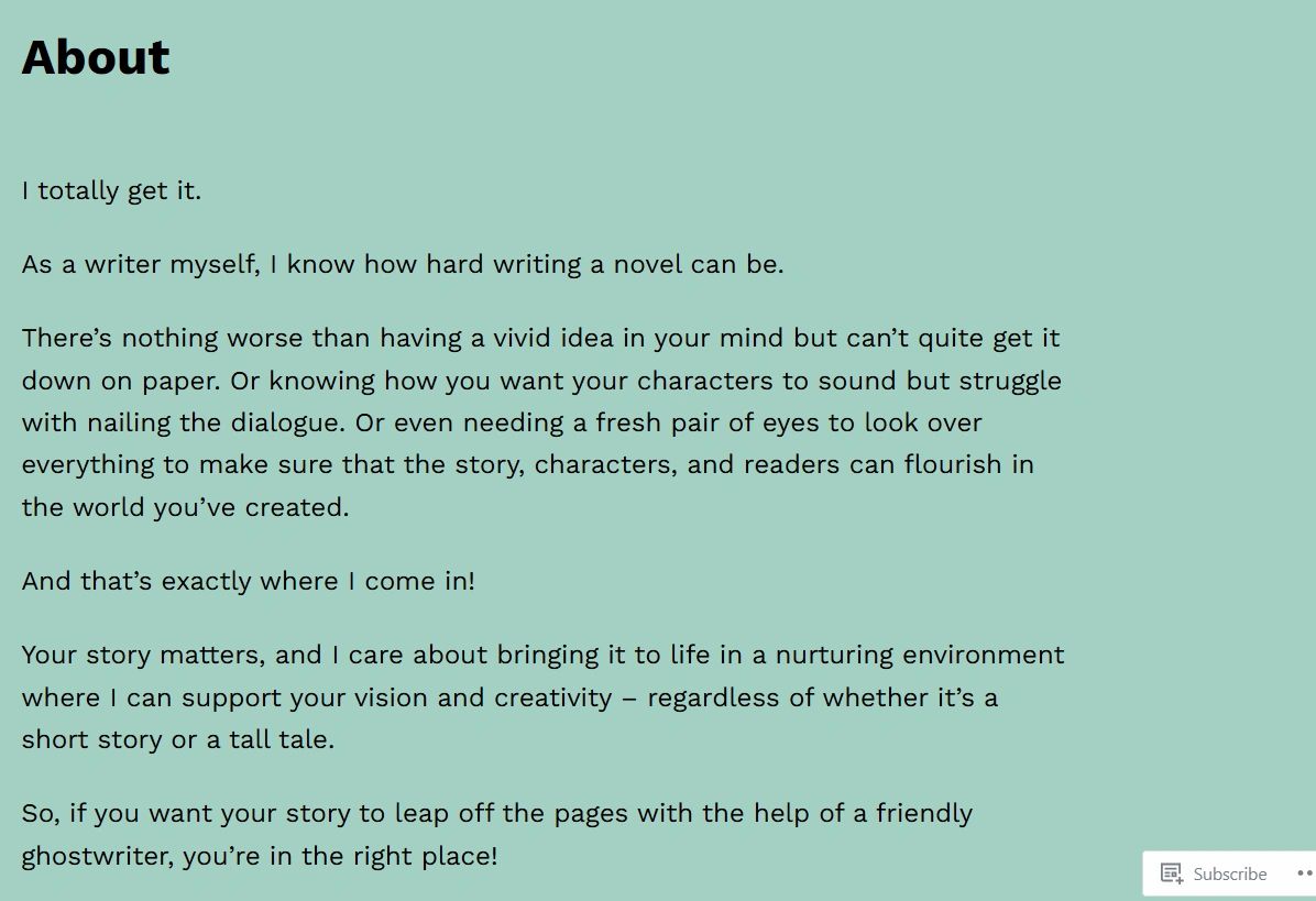 WEB COPY FOR A FICTION GHOSTWRITER